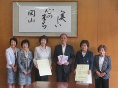 「国際ソロプチミスト岡山」から「DV啓発活動用品一式」及び「善隣館への寄付」が、大森雅夫岡山市長に贈呈されました。
