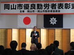市内事業所等に長年勤務し、職務遂行上特に貢献のあった方を表彰する平成29年度岡山市優良勤労者表彰式が行われ、大森雅夫岡山市長が出席しました。