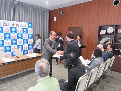 地域社会の構成員である外国人市民の生活上の諸問題及び多文化共生社会の実現に関する必要事項について調査審議するため、岡山市外国人市民会議(第6期)第1回会議が開催され、大森雅夫岡山市長が委員へ委嘱書を交付しました。