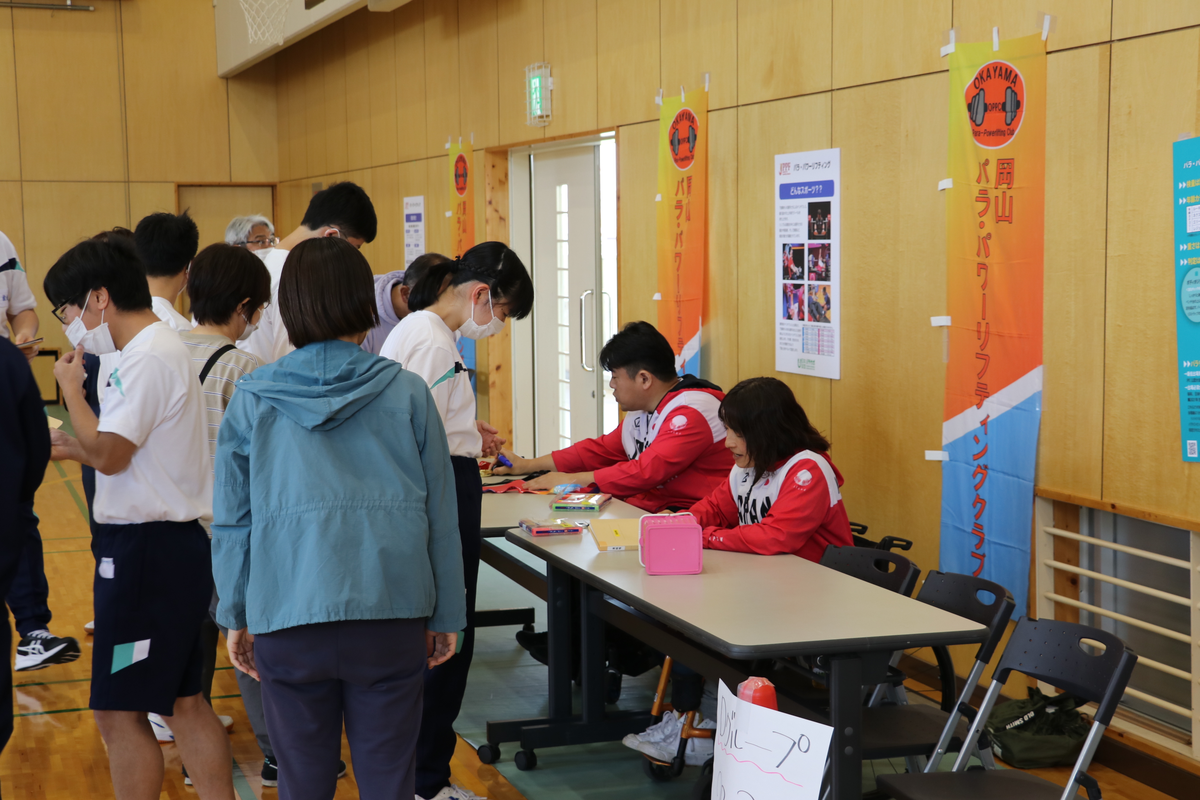 4箇所のブースに分かれ、「ベンチプレス体験」、「東京2020パラリンピック競技大会の体験談」、「選手の生の体に触れよう(アームレスリング体験)」、「選手と直接交流しよう(写真撮影、サインなど)」が催され、各ブースで歓声や感動の表情を垣間見ることができました。ベンチプレス体験では、持ち上げた重さの合計目標1,000キロに対して、結果は2,550キロと目標を大きく上回り、皆さんの力を合わせれば大きな結果を生み出すことを体験しました。