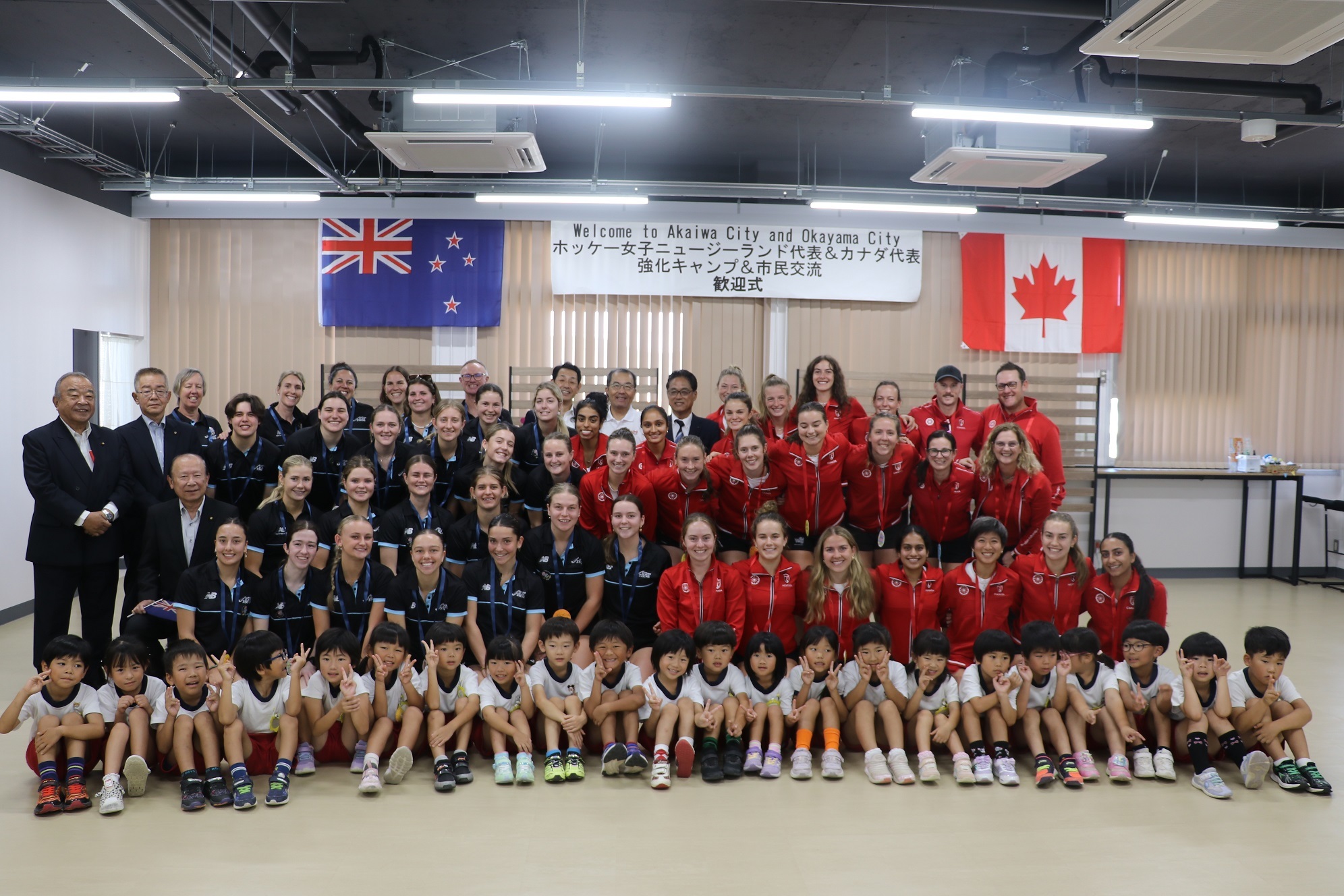 令和6年10月15日(火曜日)から24日(木曜日)までの10日間、ニュージーランド(U21)とカナダ(U23)の女子ホッケー代表チームによる強化キャンプが岡山市と赤磐市で行われました。
