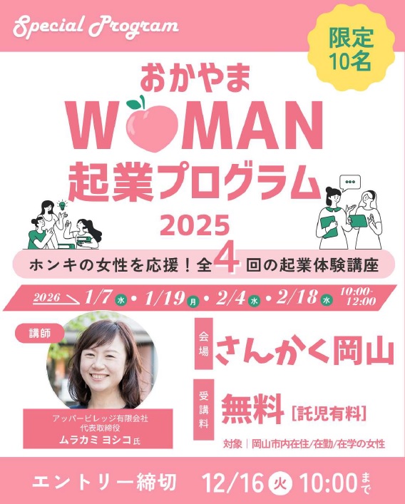 ・令和7年9月から12月にかけて「おかやまWOMAN起業イベント‐女性起業家のリアルをのぞき見‐」(全4回)を開催しました。