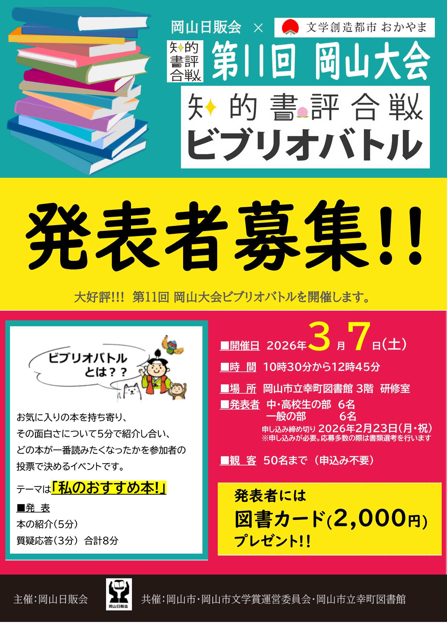 第11回ビブリオバトル岡山大会発表者・参加者 募集