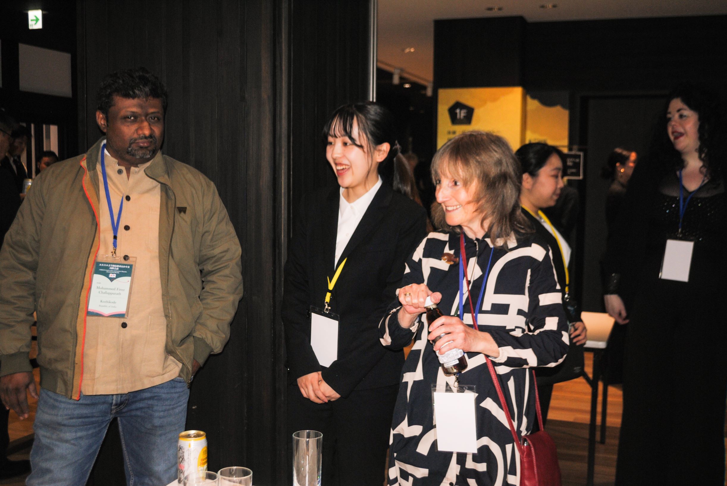 岡山城天守閣で海外ゲストの歓迎レセプションを開催しました。約50名が参加し、岡山市の大森市長、岡山市議会の田口議長の挨拶、文学創造都市岡山推進会議の山川会長の乾杯の後、海外ゲストが一人ずつ自己紹介と挨拶をされました。筝曲三上社による琴の演奏、おもてなし武将隊による岡山城の紹介等もあり、あたたかい雰囲気でゲストをお迎えすることができました。