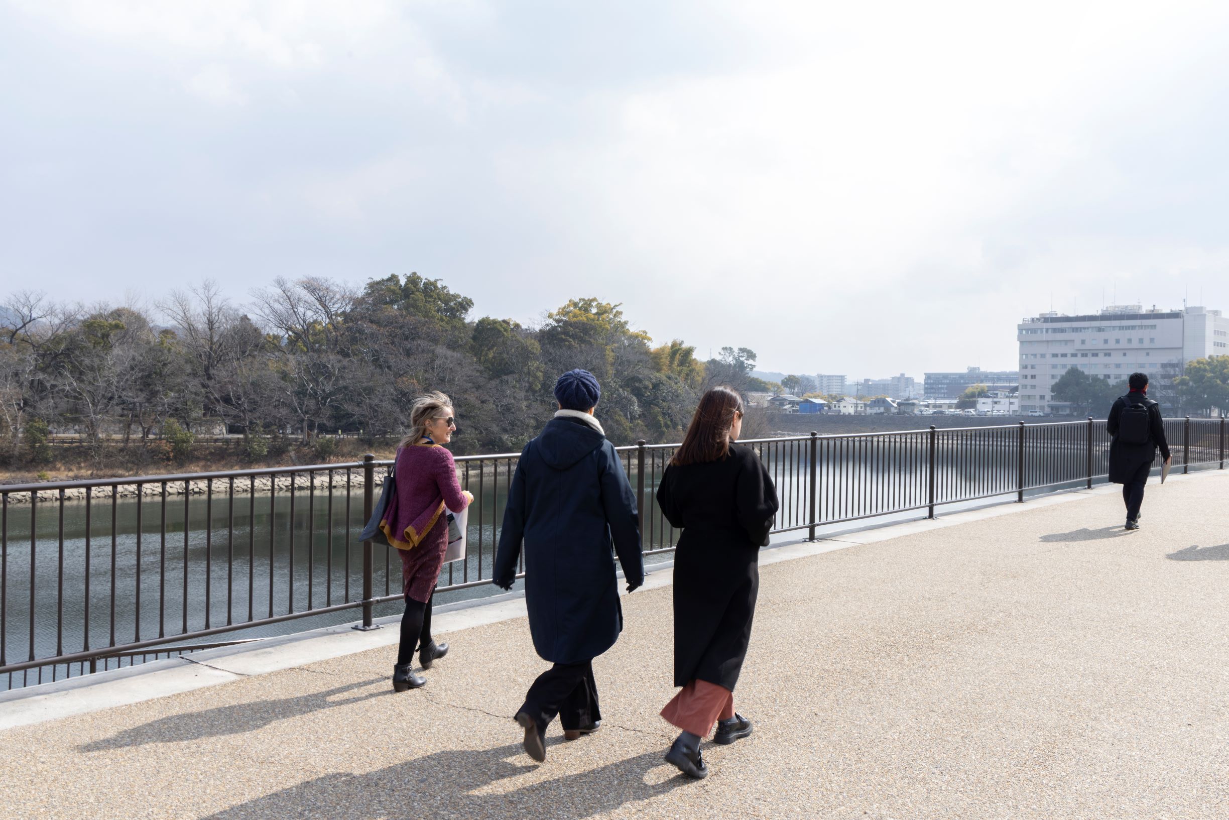 art cafe夢二から午後のエクスカーション先の岡山神社までは、旭川沿いを散歩しながら移動。