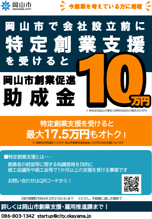 ※令和5年度をもって「岡山市創業者支援事業補助金」は終了しました。