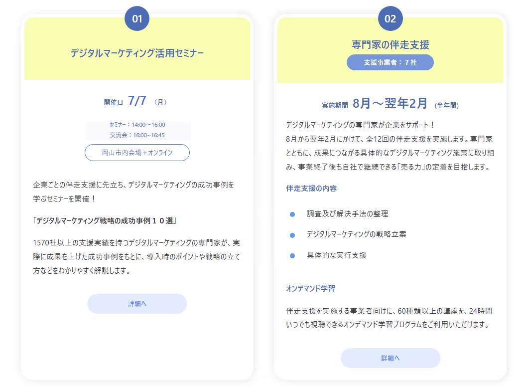 デジタルマーケティングの専門家が、戦略立案から実行支援までを伴走するプログラムを実施します。