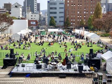 今回の取り組みは、11月2日から12月19日の48日間の期間限定として、まちの中心にある下石井公園が、これまでより日常的に市民に親しまれ、多様な方々がゆったりと憩える空間となるよう、令和2年度のイベント時に設置し好評であった人工芝を、昨年度より期間を延長し、また面積も拡大し設置しました。期間中は、多くの方々に居心地の良い滞在空間を体感していただくことができました。