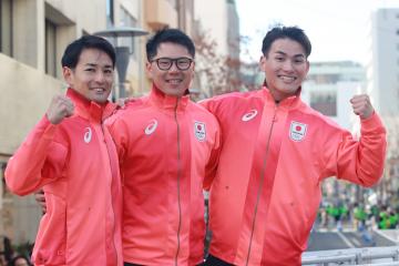 2号車 太田選手(自転車トラックレース)、長迫選手(自転車トラックレース)、中西選手(アーチェリー)