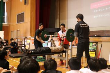 岡山県立岡山東支援学校を訪れ、高等部の1年生と3年生約50人と交流を行いました。実際にパラ・パワーリフティングにチャレンジし、選手と競技を身近に感じるプログラムを通して楽しい交流をすることができました。
