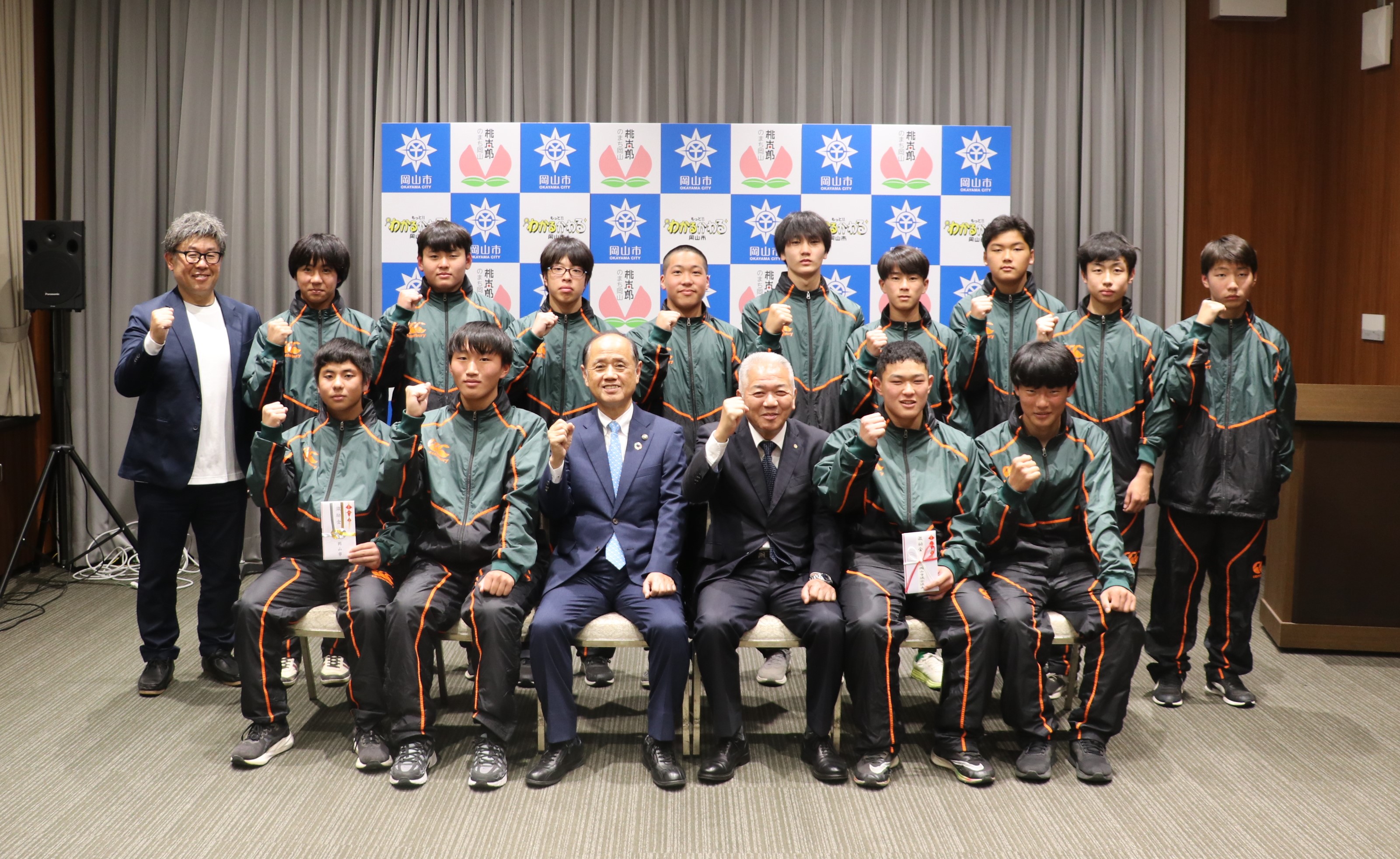 ラグビーの全国大会に出場する「岡山県スクール代表」(中学生)の選手・関係者が岡山市を訪問しました。