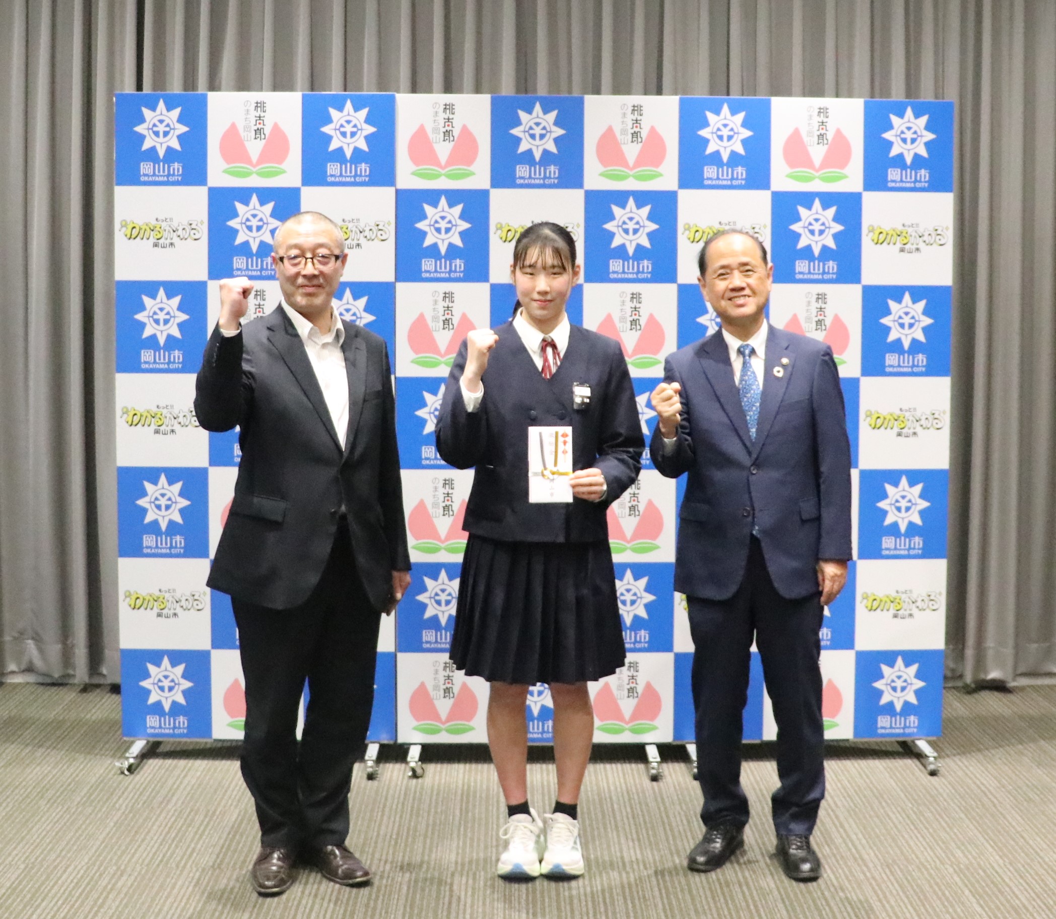 剣道の全国大会に出場する南輝剣道スポーツ少年団の清水 結月(しみず ゆづき)選手・関係者が岡山市長を訪問しました。