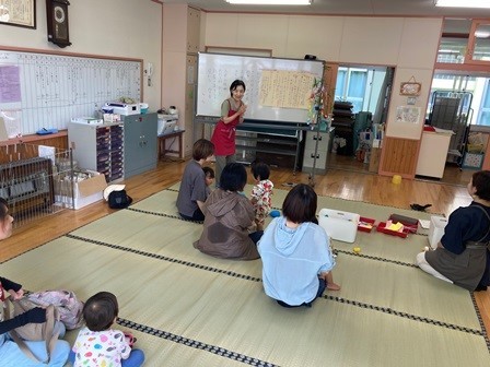 お星さまを手に隠して、わらべうた「おてぶしてぶし」で遊びました。