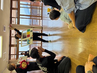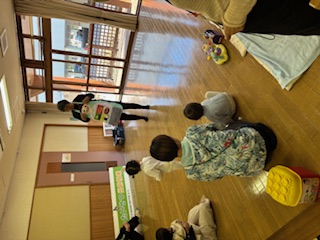 今回は「コープ出前授業」のみなさんにお越しいただきました。 「食べるたいせつ」をテーマに食べ物をわかりやすく色分けしたお話しや、エプロンシアター、手遊びなど、楽しく学ぶことができました。