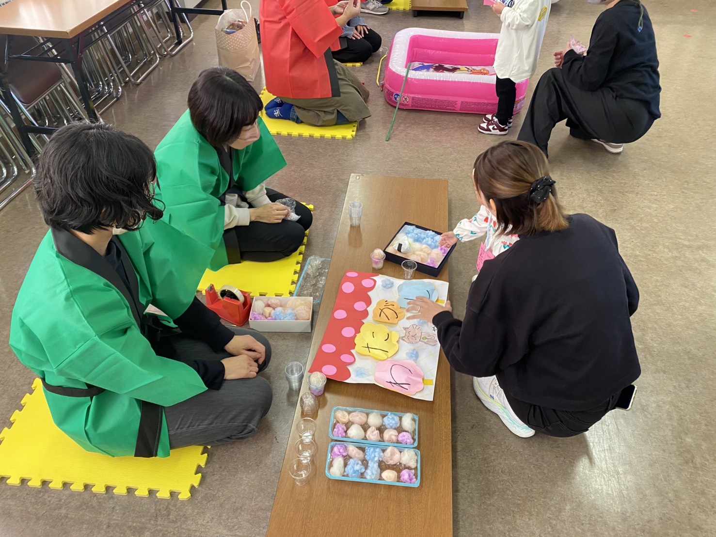 「ぱくぱく動物園」「ぽんぽん玉入れ」「わたがし屋さん」「さかなつり」と清心大