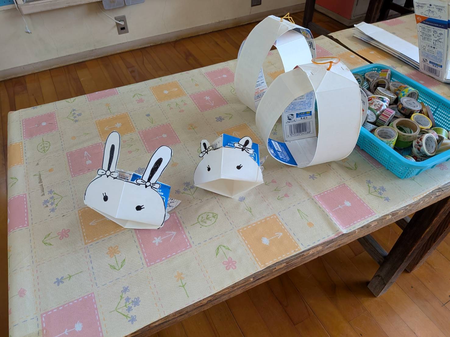 今日は「牛乳パックでオモチャを作ろう」です。