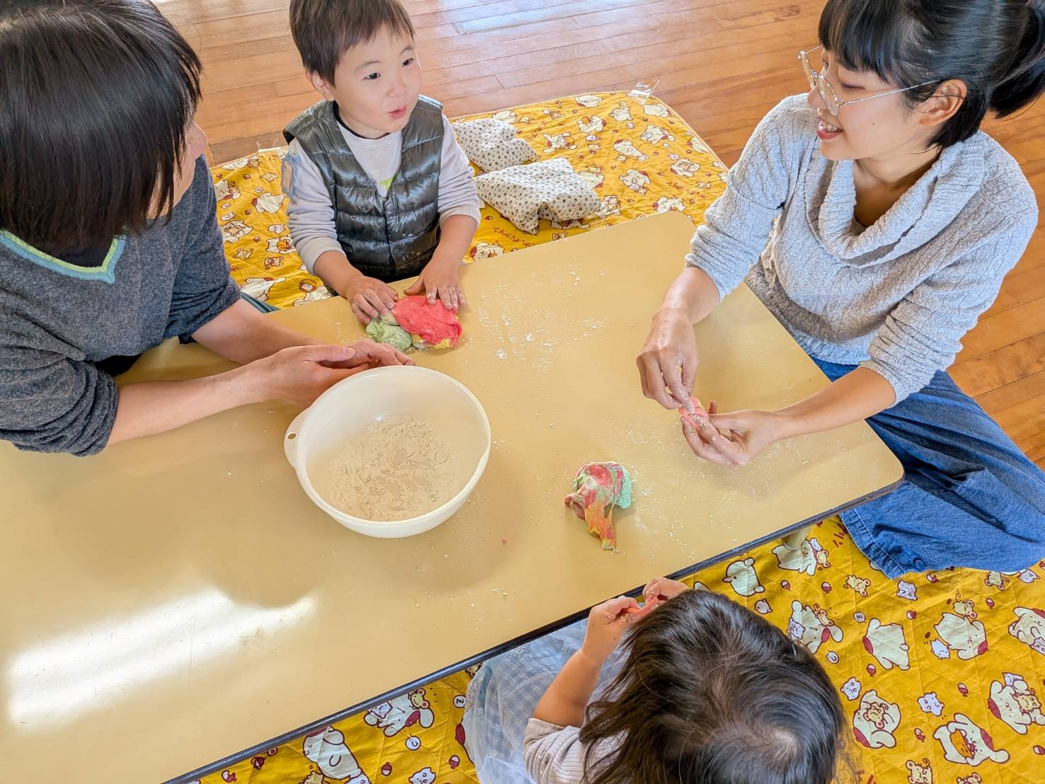 今日の広場は、「小麦粉粘土で遊ぼう」です。
