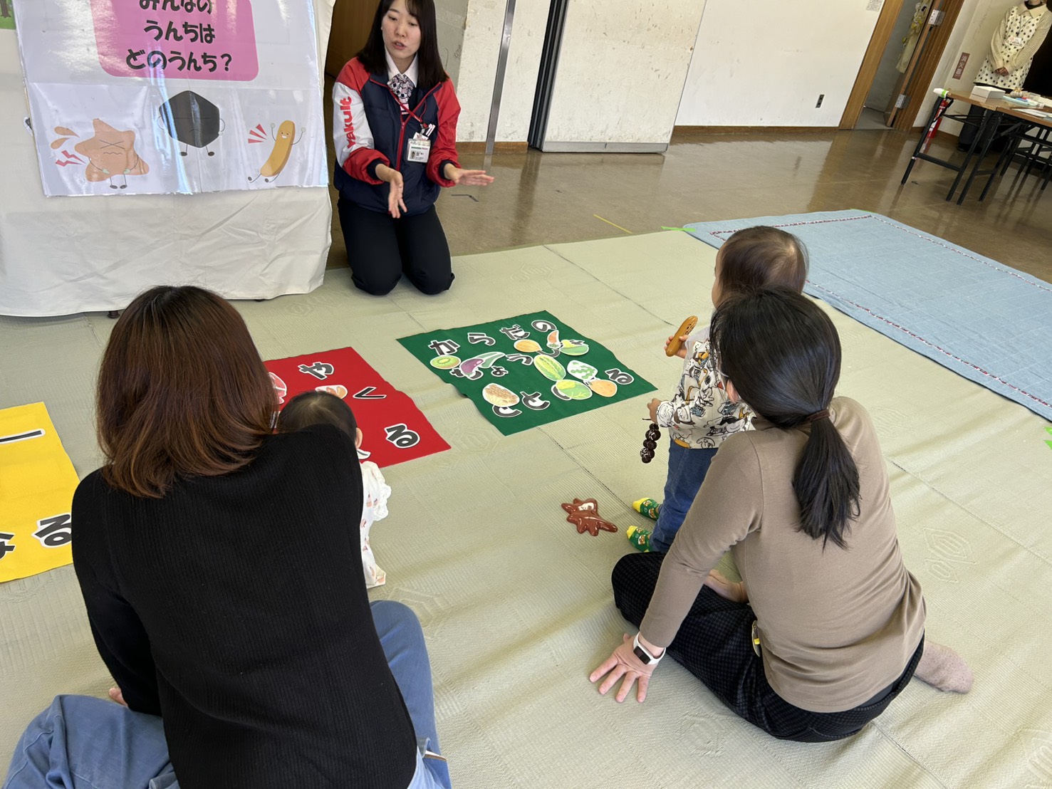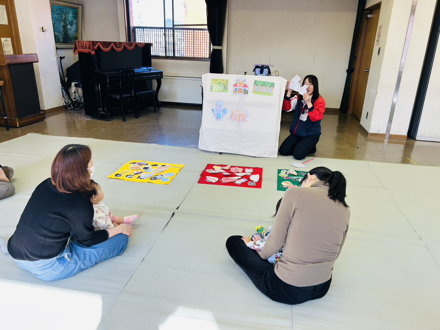 公民館の小さなお部屋です。自由遊びのあと、触れ合い遊びをする予定です。