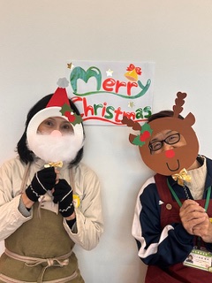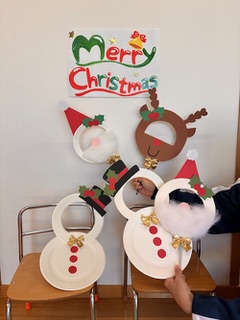 スタッフも今日の工作テーマに合わせて色々な被り物でクリスマスの雰囲気を盛り上げてみました。