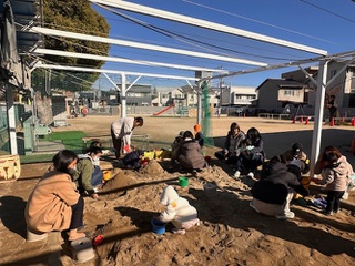 気合いを入れて防寒対策をしてきましたが、園庭はお日様のおかげでポカポカです。