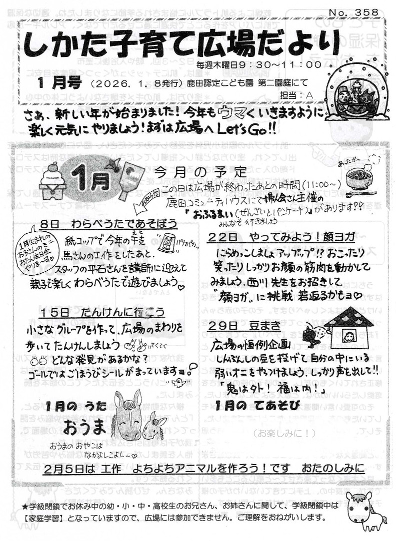 広場だより1月号です。