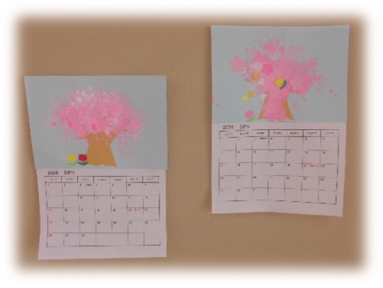 今月はスタンプで満開の桜を咲かせました!