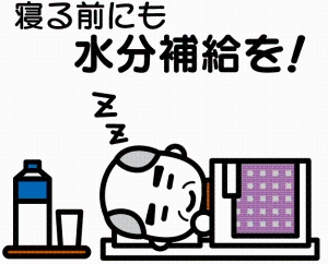 また、入浴の前後や就寝前にもこまめに水分を補給しましょう。