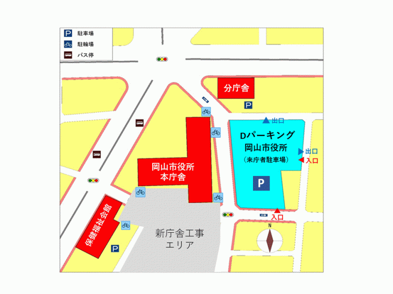 駐車場は、Dパーキング岡山市役所をご利用ください。