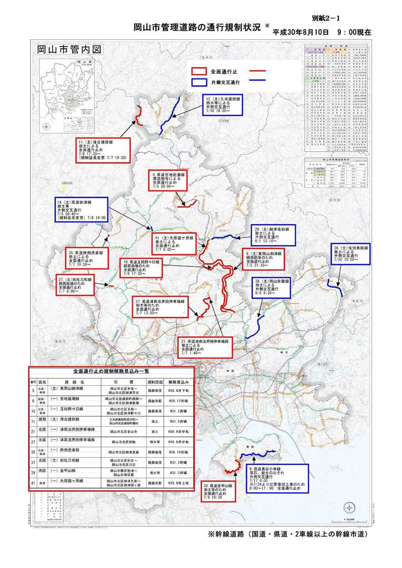 平成30年8月10日(金曜日)9時現在の岡山市内における被害情報は下記のとおりです。