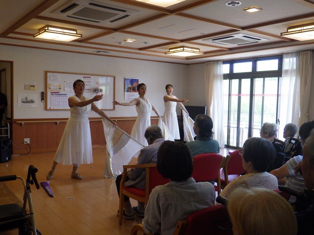 この日、高齢者に多い転倒や誤嚥による事故等の発生を予防するための普及啓発講座、懐かしいヒット曲にのせてのカラーガード隊の演技が行われました。