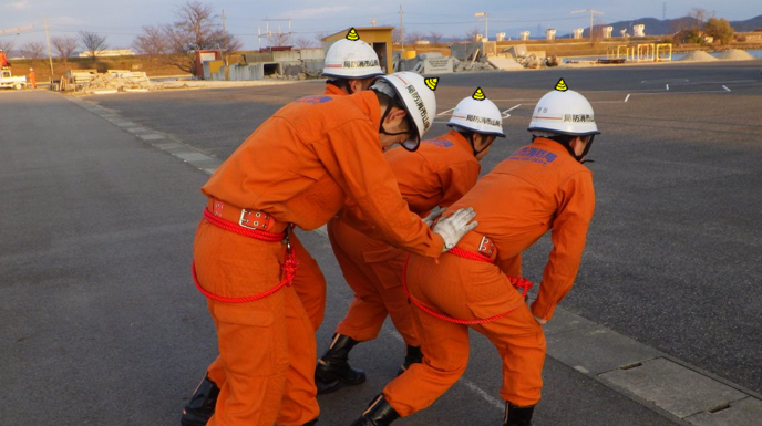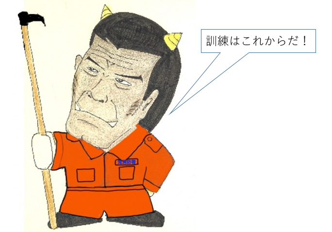 これは訓練だ。スタートから走り、跳び、呼吸器を背負って閉所を這い、1分半ほどでゴールにつく。疲労にあえぐ鬼たちに訓練指導者の鬼は言う。