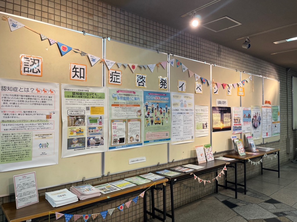 岡山市では、認知症になっても、本人の意思が尊重され、できる限り住み慣れた地域で、安心して暮らし続けることができる社会の実現を目指しています。この「認知症の日」を中心に、関係機関等と連携を図り、認知症に関するパネル展等を行い、市民の皆さまに認知症に関する啓発活動を行いました。