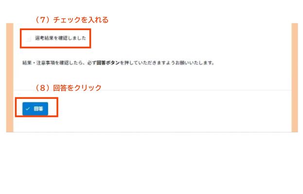 - 画面の(7)の「選考結果を確認しました」に☑を入れてください。