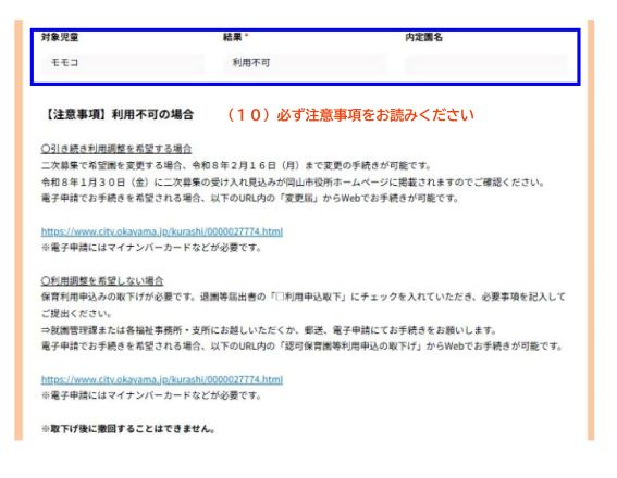 - 「利用調整結果通知書(利用不可)」をお送りします。