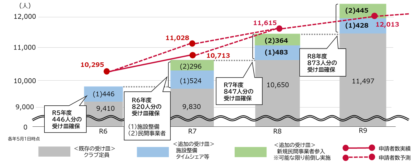 令和6年度から新たに設置促進事業費補助金(開設準備費や賃料)を創設し、民間事業者の参入を支援しています。今後、さらに支援を拡充し、民間事業者の参入促進を図ることで、受け皿の拡大を目指します。