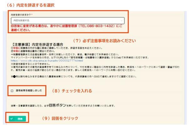 - 以下、「内定の場合」「利用不可の場合」をご覧ください。