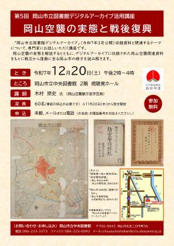 | 第5回 | 令和7年12月20日(土曜日) | 戦災と復興 | 木村 崇史 氏(岡山空襲展示室学芸員) |