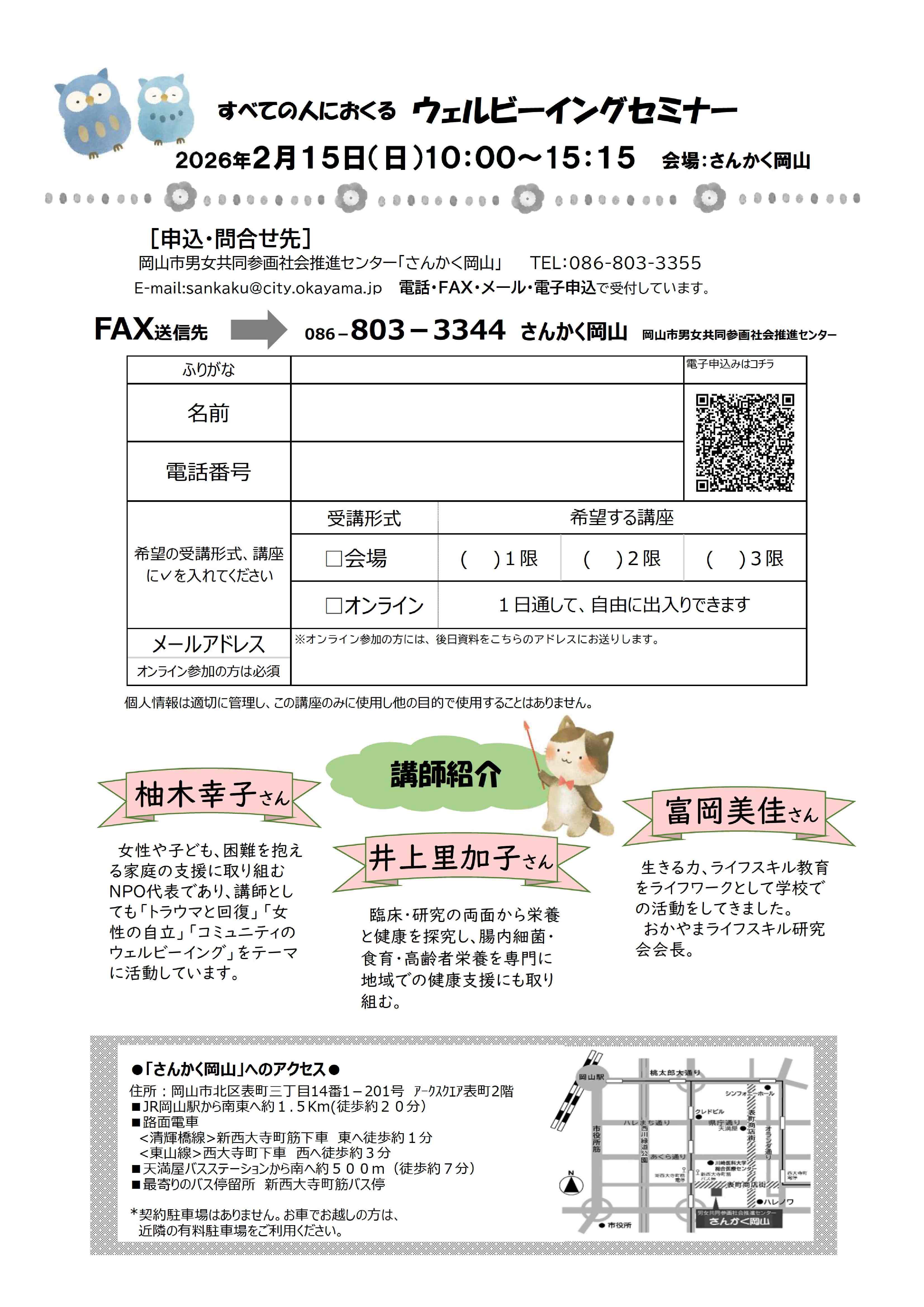 参加費を添えて、さんかく岡山窓口で直接お申し込みください。