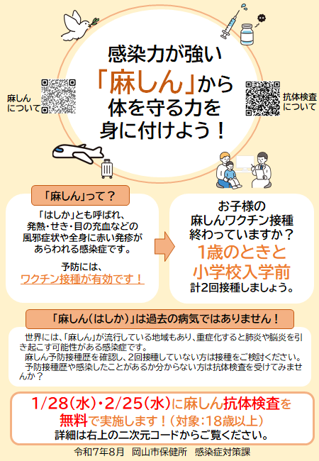 麻しんの感染予防及び感染拡大防止を目的に、麻しんの抗体検査を無料で実施します。