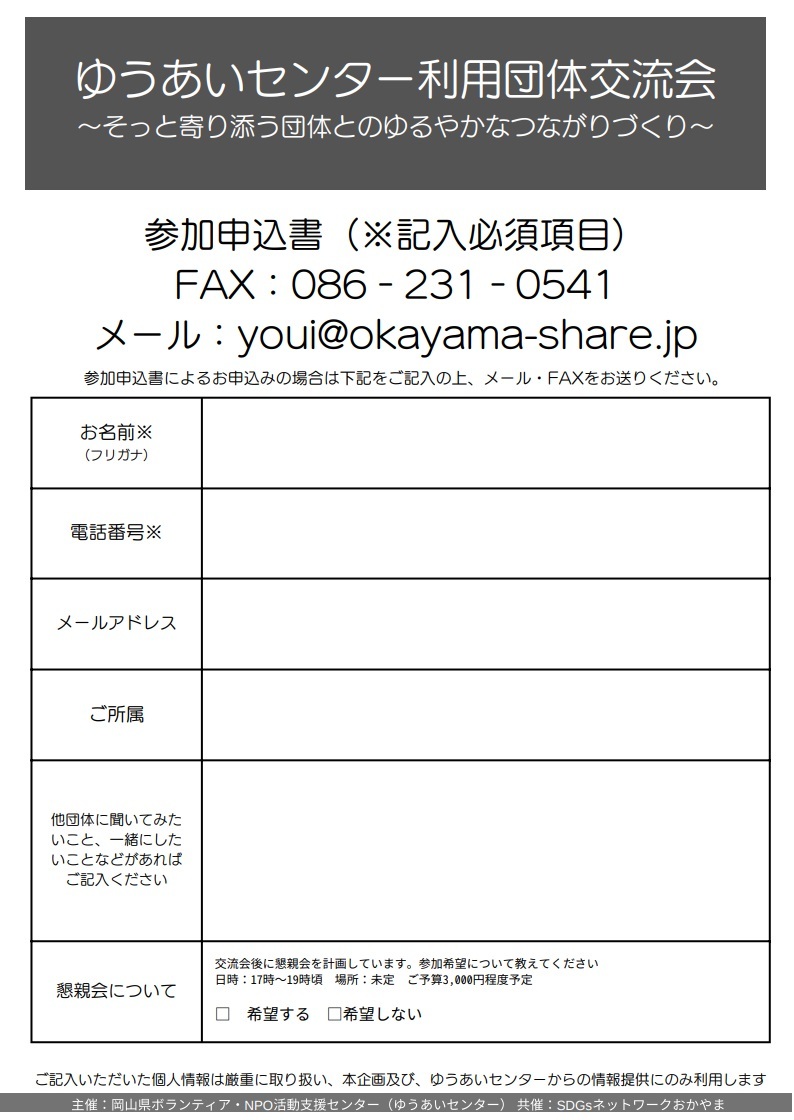 ゆうあいセンター大 会議室(岡山市北区南方2丁目13-1)
