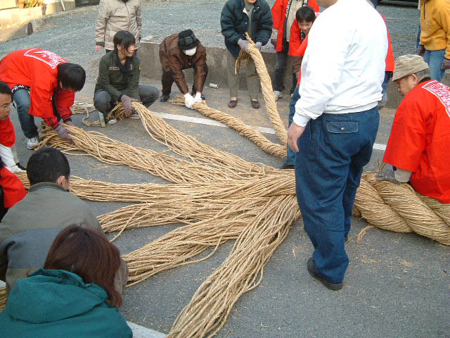 岡山市出石町で毎年行われる祭り。出石町内の路地にて、荒縄を束ねて三本の綱を撚り、それを更に三つ編みにして竜の形を作る。これを担ぎ上げ、町内を太鼓・鉦・掛け声などに合わせて練り歩き、岡山神社に奉納する。一年の無病息災・家業繁栄・火難よけを祈願する。