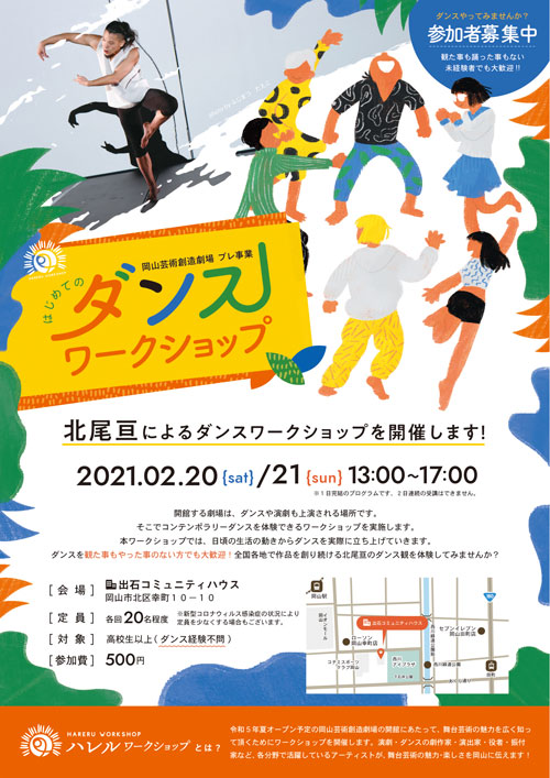 ハレルワークショップは岡山市民の皆さんに“舞台芸術”の魅力を知っていただく為に行う、ダンス・戯曲・演劇を体験するワークショップです。全国で活躍するアーティストの演劇観やダンス観に岡山で出会えます。