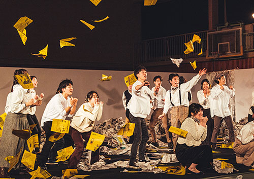 記事を甘い、辛い、苦いといった味で表す言葉遊びや大胆な動き、表情なども舞台の見どころ。大所帯だからこそ映える躍動感にあふれた演出で、参加者も熱のこもった演技を魅せました。