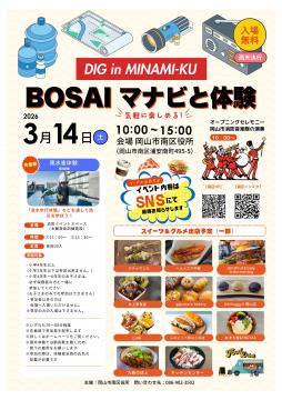 令和8年3月14日(土曜日)に南区役所駐車場にて、「DIG(ディグ) in MINAMI-KU BOSAI マナビと体験」を開催します。
