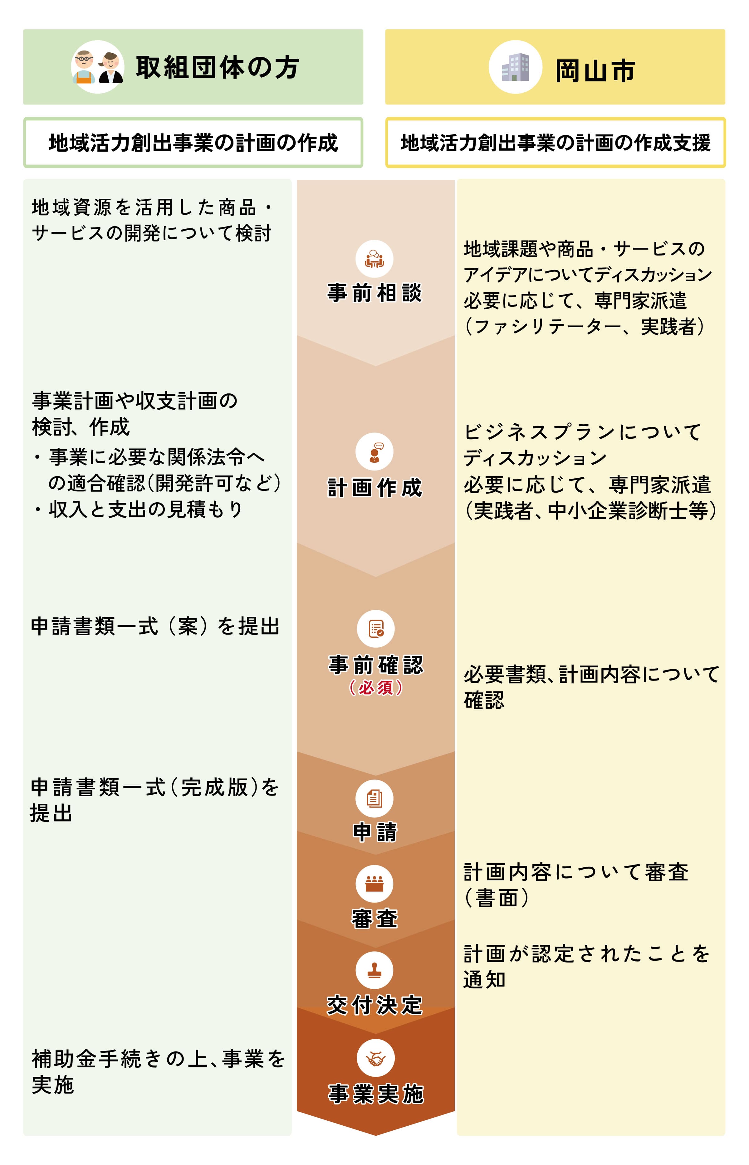 作成した申請書類一式(案)について、事前に取組団体と市で確認を行います。