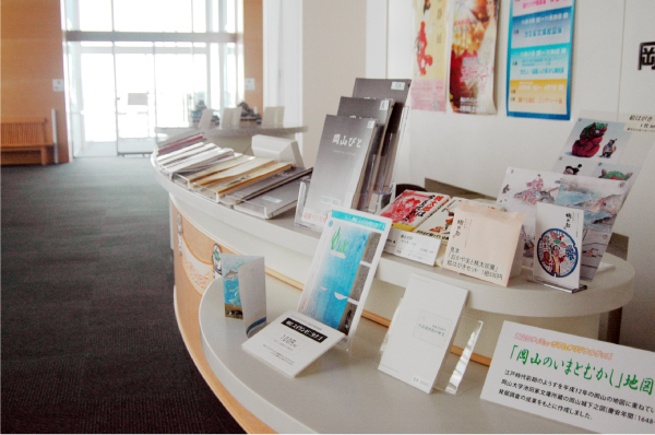 岡山シティミュージアムの5階受付横では、当館の出版物やペーパクラフト作品、DVD作品の販売を行っております。