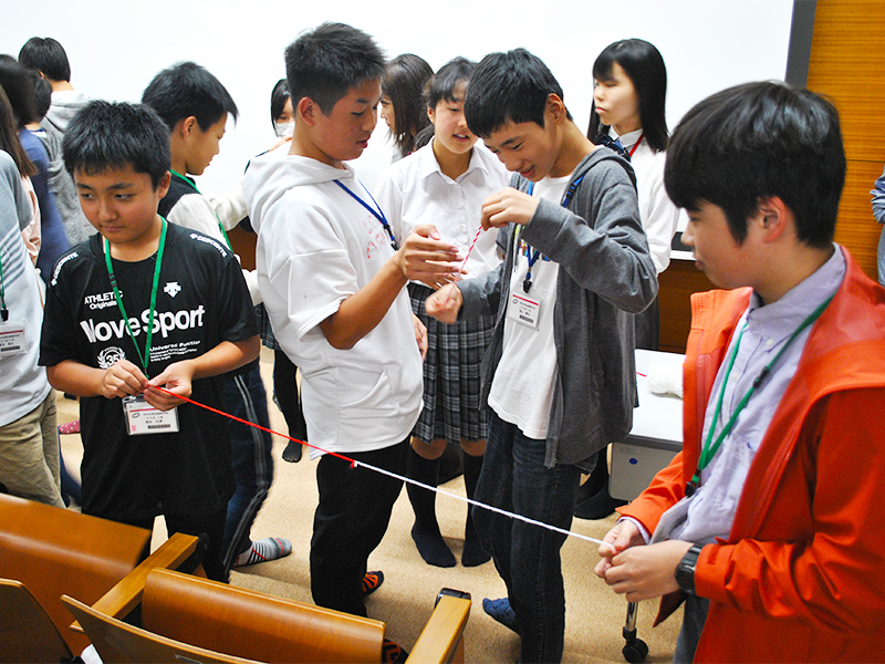 報告会の最後には、ブルガリアの伝統的なお守り「マルテニツァ」作りが行われました。マルテニツァとは、紅白の糸を編んだお守りのことで、ブルガリアでは春になると、健康と幸福を願って家族や友達に贈り合うそうです。2019年春には第18総合学校から同校の生徒たちへのプレゼントとしてマルテニツァが贈られ、そのお礼に同校からは夏に手作りうちわを贈りました。このように、相手の国を知り、自国の文化を伝えながら交流を深める活動を継続的に行っています。