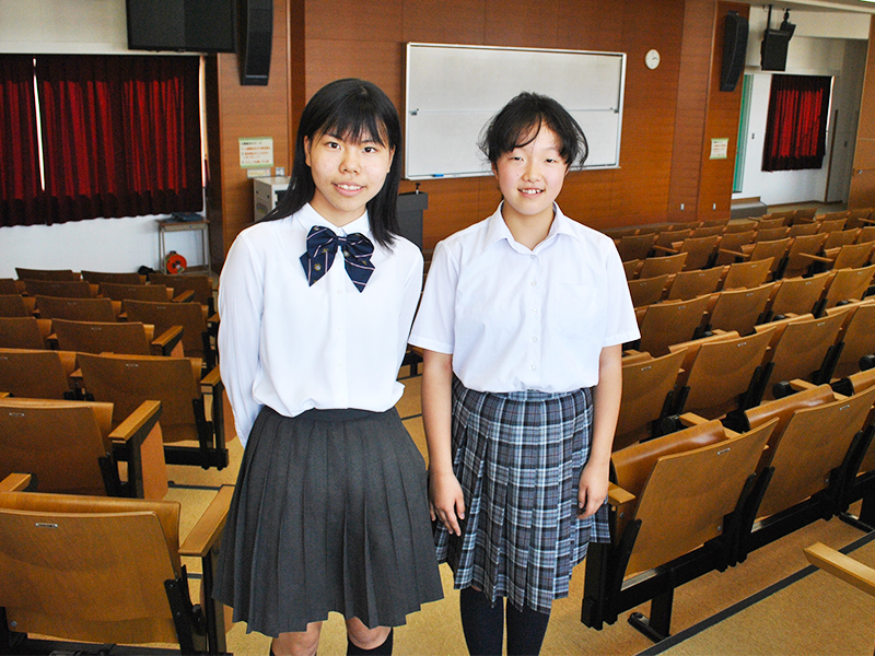 こういった学校での交流活動がきっかけとなり、夏には2名の生徒が「岡山市子ども海外派遣事業」に申し込み、選定されてブルガリアを訪問しました。帰国後、同校では2名による報告会が開催されました。