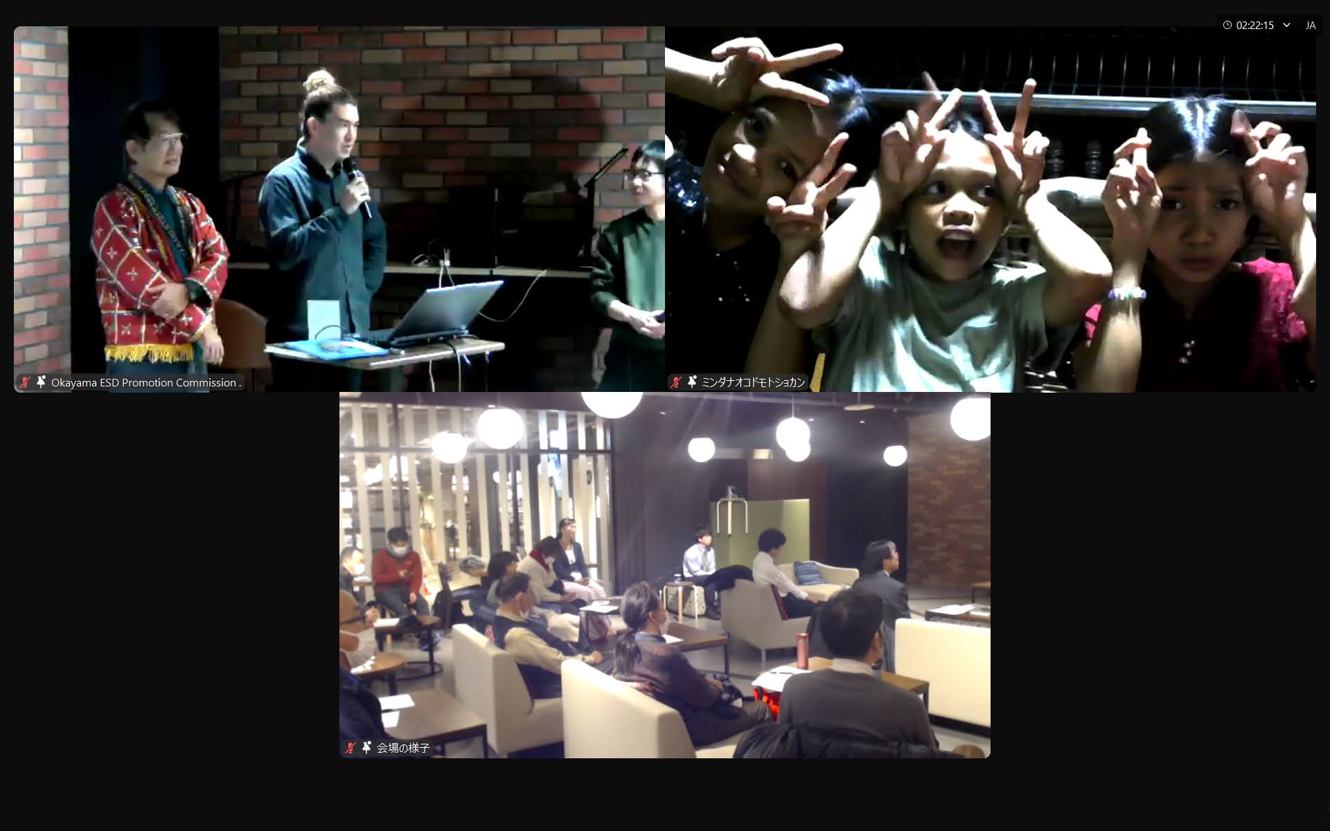 最後に、MCLの子どもたちが、元気で明るい顔をオンライン上で見せてくれました。会場からもみんなで手を振って、とても豊かな、心が通う交流となりました。