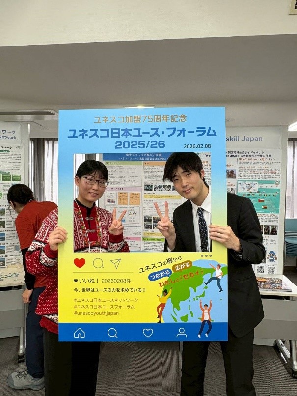 令和8年2月8日(日曜日)に日本教育会館(東京・千代田区)で行われた、「ユネスコ日本ユース・フォーラム2025/26」に参加しました。遠方での学習機会ではありましたが、「令和7年度ユース活動支援助成金」を活用することで、地域差を感じずに充実した時間を過ごすことができました。